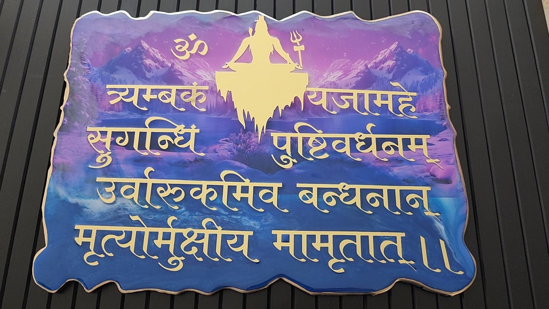 Handcrafted resin wall art featuring powerful verses and mantras in English, Hindi, and Gujarati. Elegant, spiritual, and customizable — perfect for homes, prayer rooms, meditation spaces, and gifting.